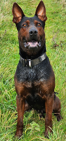 Rieka was my first Laizhou Hong and the one that made me fall in love with this breed. She is the first Laizhou Hong to acheive an IGP1 title in the world! She is medium high drive, has a decent of switch and loves to work. Rieka has the best PennHipp score so far of the breed and is the only one from her bloodlines currently in the country. Shes also recently become a certified therapy dog and absolutley adores visiting old folks homes and putting smiles on their faces. Riekas parents are both working dogs. Rieka does all the things with me except for agility. She absolutely loves scent detection and tracking and is a great example of how versatile this breed can be!